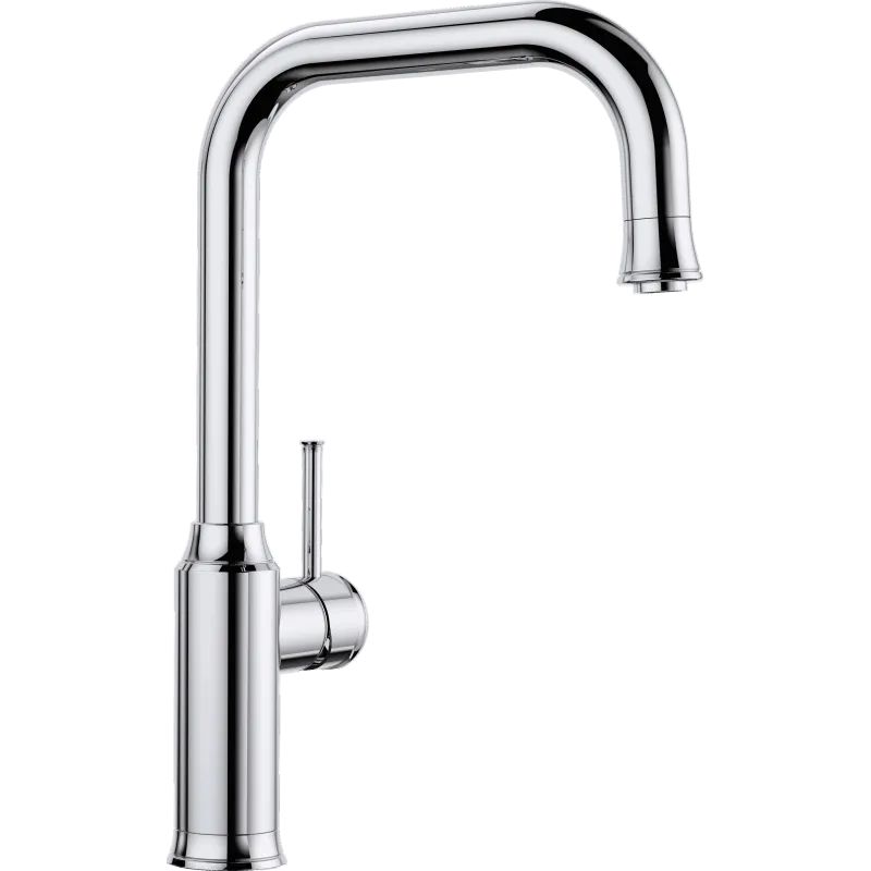 BLANCO LIVIA-S krom Tradition møder moderne Moderne design med charmerende detaljer Høj tud i J-form gør det let at fylde høje genstande som vaser og kander Udtræksbruser giver større arbejdsradius 190 svingradius Anbefales specielt til højkvalitets bor