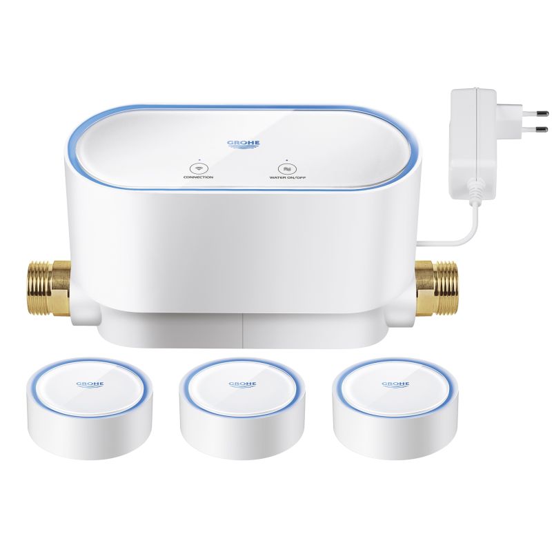 Grohe Grohe Sense Kit 230v 1 Guard 3 Sensor Elektronisk vandafbryder og sikkerhedssystem med 3 vandsensorer. Opdager rørbrud, microlækager, frost og usædvanlige vandstrømme. Lukker omgående for vandtilførslen for at mindske risiko for skader. Elek