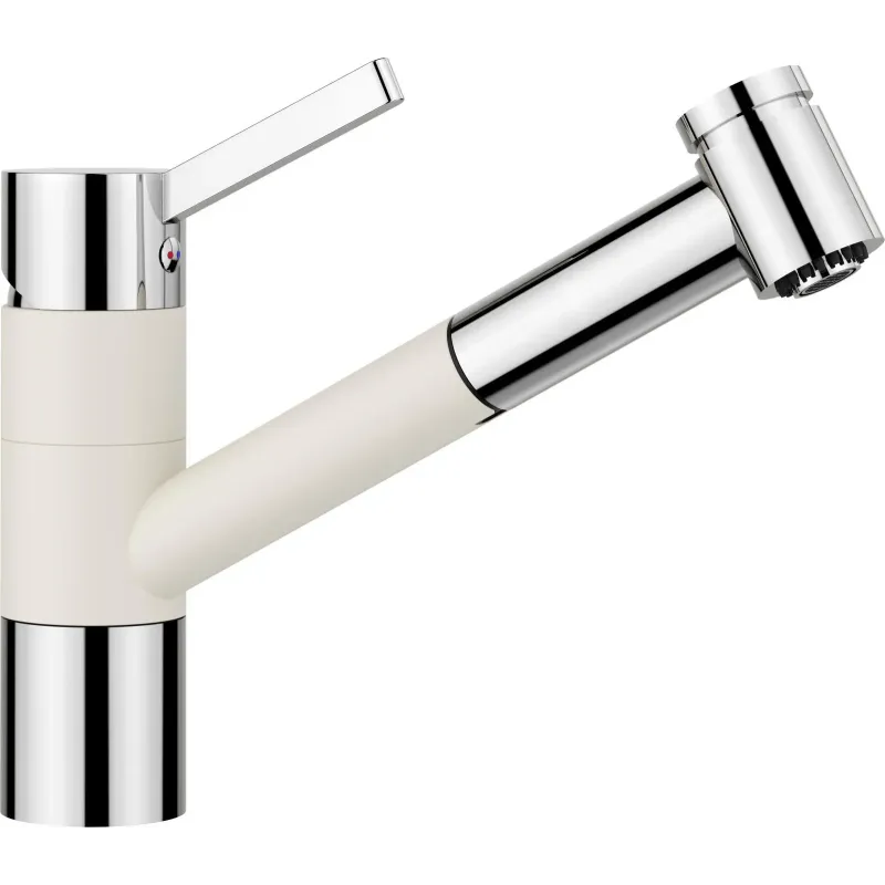 BLANCO TIVO-S soft-whitekrom Komfort i bedste form Udtræksbruser giver større arbejdsradius Velegnet til køkkenvaske i moderne design 120 svingradius Omskift mellem brus eller stråle Modellen fås i krom og forskellige SILGRANIT-kombilook farver, der